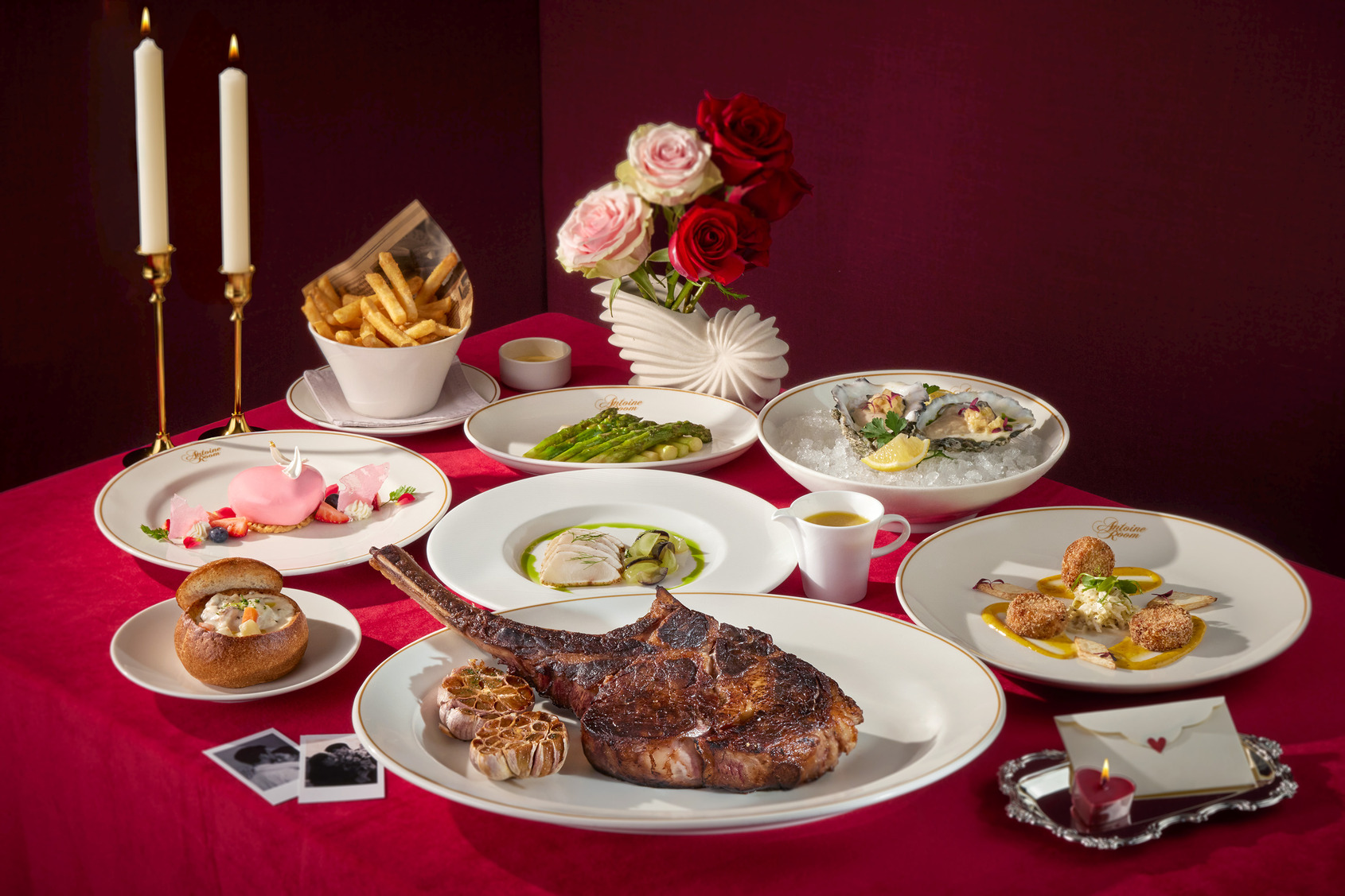 以優雅氛圍與精緻料理聞名的安東廳牛排館,西洋情人節特別推出七道式「頂級海陸饗宴」。序曲由鮮甜飽滿的「美國生蠔」揭開,搭配清新爽口的醃漬青蘋果,交織出海洋與果香的細緻平衡;接續呈上「炙燒海鱺魚.檸檬香草油醋醬」,以恰到好處的火候,襯托魚肉的細嫩與清爽酸香。