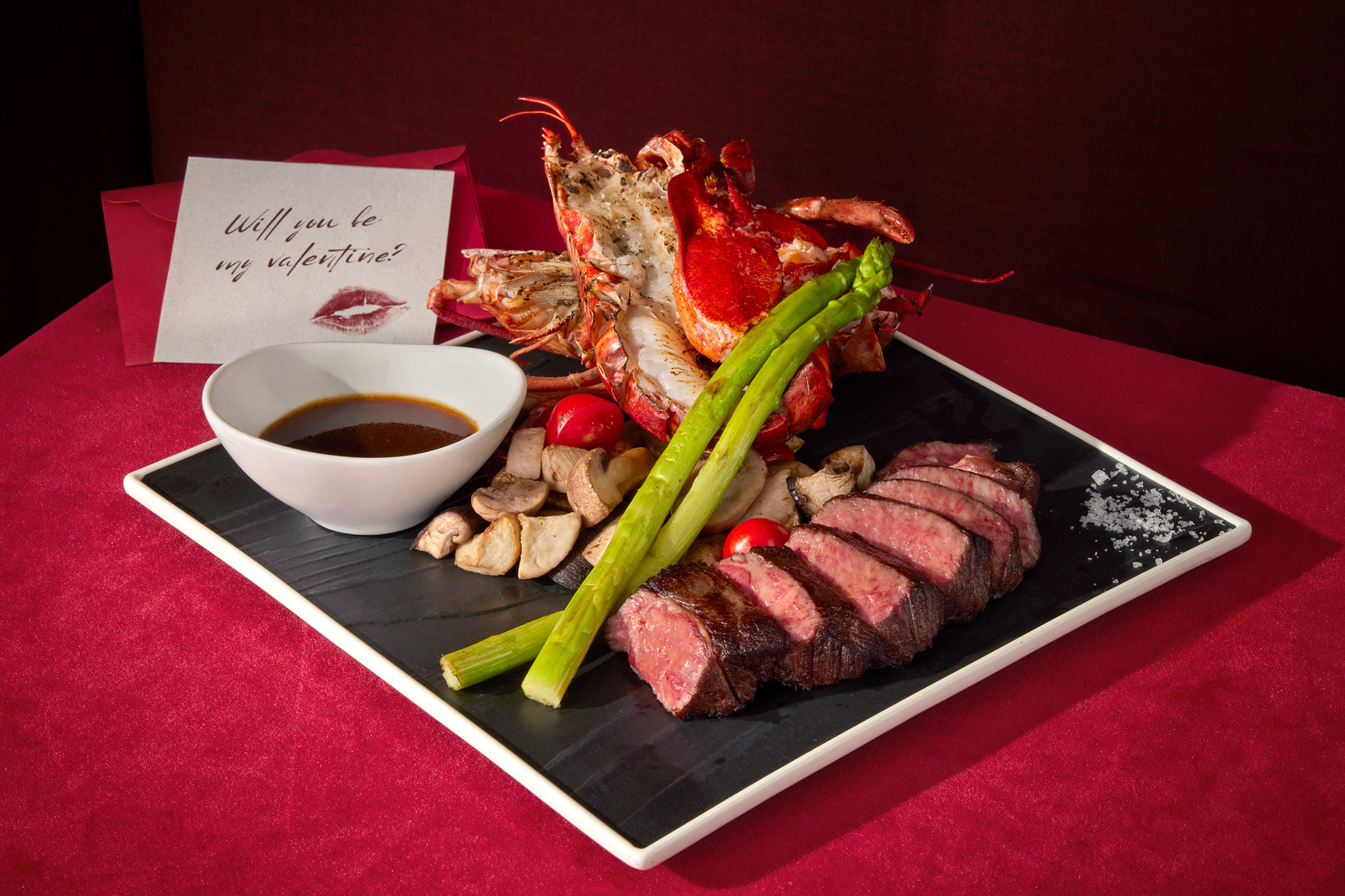 主食獻上「那不勒斯海味比薩」,展現正統拿坡里風味;隨後呈現「日本甜南瓜燉飯」,搭配阿拉斯加帝王蟹、透抽與櫛瓜,層層堆疊海味鮮甜。主菜嚴選「燒烤鹿兒島A5小田和牛臀6oz.」,搭配窯烤波士頓龍蝦,成就義式海陸的浪漫高潮,最後以「草莓巧克力慕斯」為情人之夜畫下甜美句點。